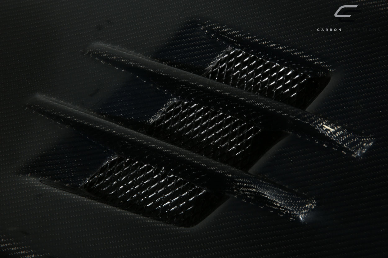 Carbon Creations is one of the most sought after brands by motorsport professionals. All Carbon Creations aerodynamics are manufactured to the highest quality standard to ensure proper fitment and durability. Not a direct bolt-on item: requires professional installation by a body shop with extensive experience in working with aftermarket parts. Every part is made with Grade """"A"""" carbon fiber and finished with a premium clear coat for UV protection. Carbon Creations parts are up to 70% lighter than OEM parts, increasing performance and style. Whether on the track or at the show, Carbon Creations has what you need.